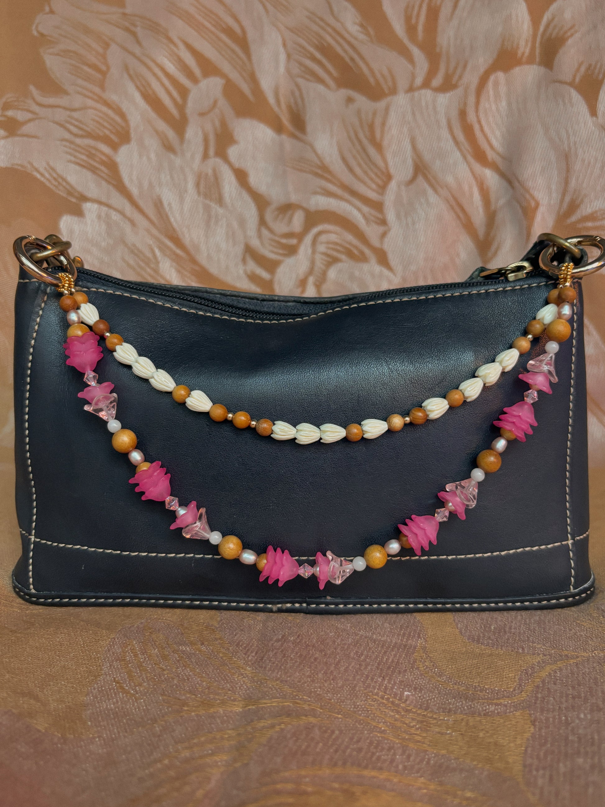 Take a soft tape ruler or piece of string to approximate where the bag lei will be hung from. These measurements include the carabiners and will be the length of the longer lei, the shorter lei will be 2"~ shorter. Please accommodate how much you'd like it to hang!